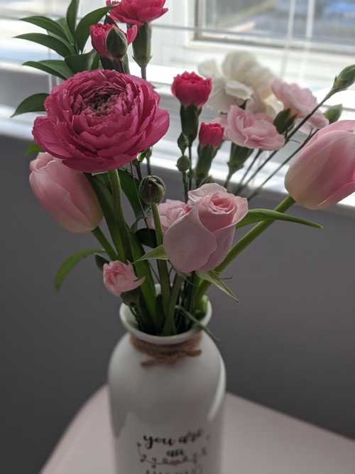 Make Mother’s Day memorable with florals arranged in a unique jug with kind words of affirmation. This is sure to bring joy to any Mother, especially this year! This arrangement has a mixtures of roses, tulips, carnations, greenery & a ranunculus (a favourite of mine!). **Available in two different messages.